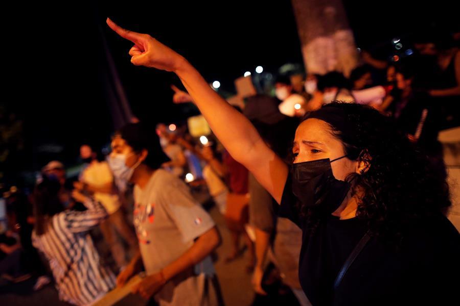 Algunos participantes en la protesta lanzaron globos con pintura contra el edificio, hicieron pintas en el piso y colocaron velas encendidas, sin que se registraran incidentes y bajo la vigilancia de agentes de la Policía que llegaron al lugar.