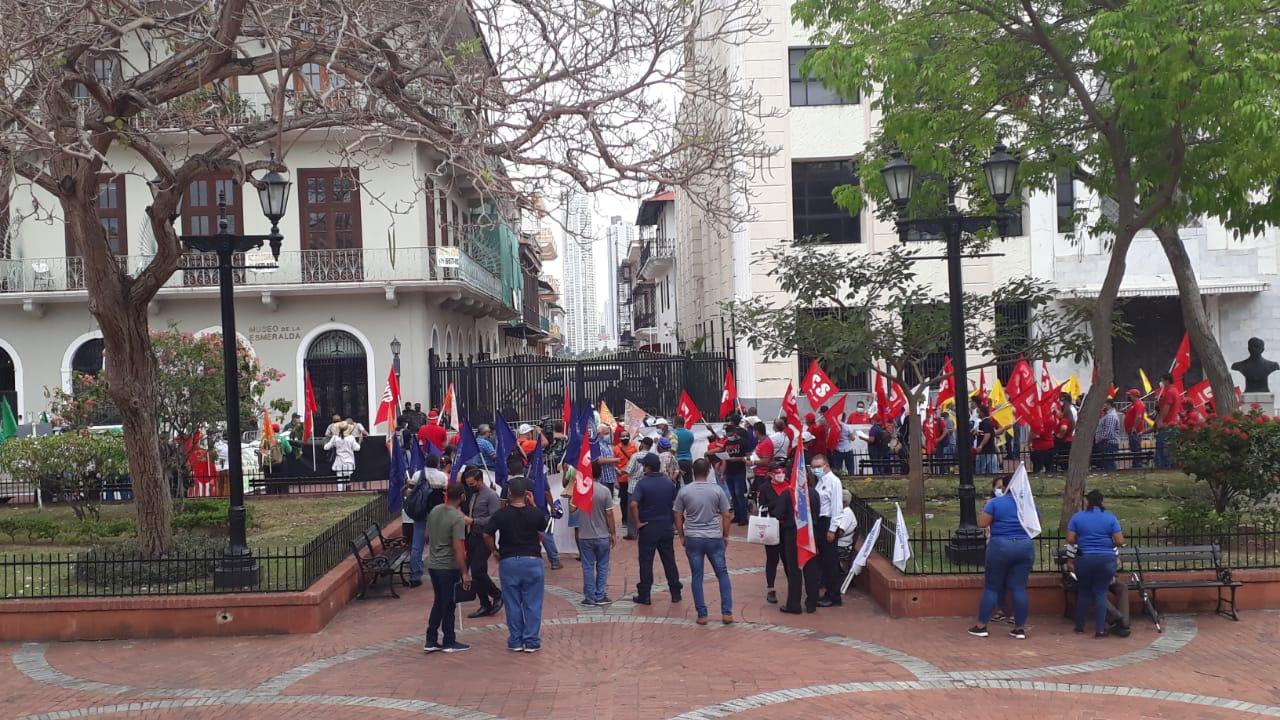 Chavarría en compañía de miembros de agrupaciones que integran Conato se encuentran en los predios de la Presidencia de la República, localizada en corregimiento de San Felipe, con conversar con las autoridades de Gobierno Nacional sobre su solicitud de integrar a la OIT en este diálogo de la CSS para que se desarrrolle con transparencia y sea participativo