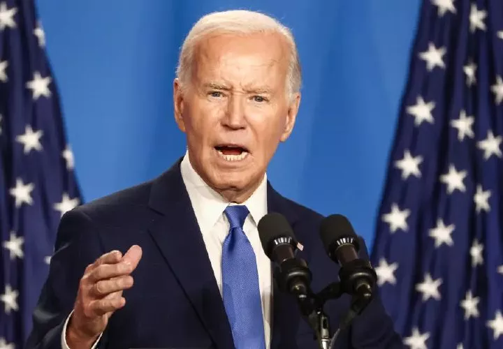 Su postura firme contrastas con los nuevos lapsus al presentar al presidente ucraniano Volodymyr Zelensky como Vladimir Putin, en la cumbre de la OTAN en Washington, provocando jadeos entre los presentes en la sala