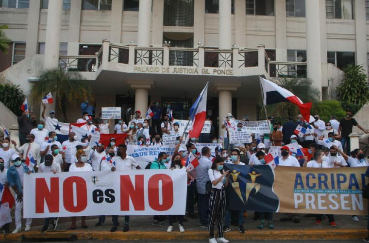 Miembros de congregaciones religiosas y juveniles se manifestaron ayer frente a la Corte Suprema de Justicia de Panamá para rechazar la unió igualitaria o matrimonios entre parejas del mismo sexo.
