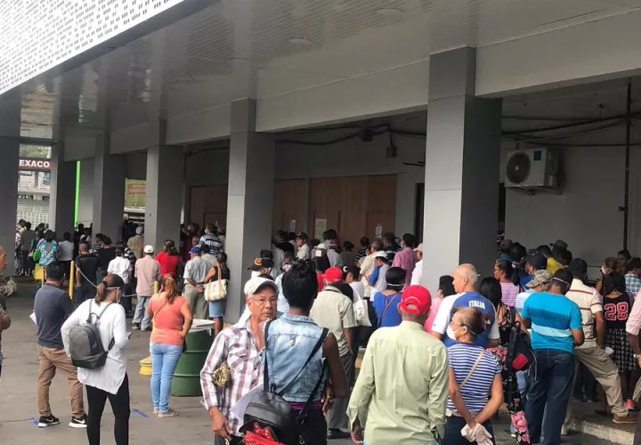 La aglomeración de personas continúa en la parte exterior de las cadenas de supermercados a pesar que el Gobierno Nacional ha establecido un plan para la compra exclusiva de alimentos y medicamentos, a través de un horario y por número final de cédulas y pasaportes, durante la cuarentena total a nivel nacional.