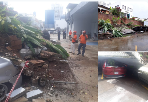 Miembros del Sistema Nacional de Protección Civil (Sinaproc), del Ministerio de Obras Públicas y autoridades alcaldicias continúa hoy, miércoles, con las evaluaciones del muro que colapsó y cayó sobre siete vehículos en un estacionamiento comercial en la vía Ricardo J. Alfaro, en el sector de El Dorado, a causa de las lluvias registradas ayer.