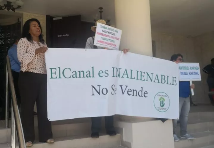Un grupo de residentes de la Asociación de Áreas del Canal se manifestaron pacíficamente hoy, lunes, en las escalinatas de la Corte Suprema de Justicia (CSJ).