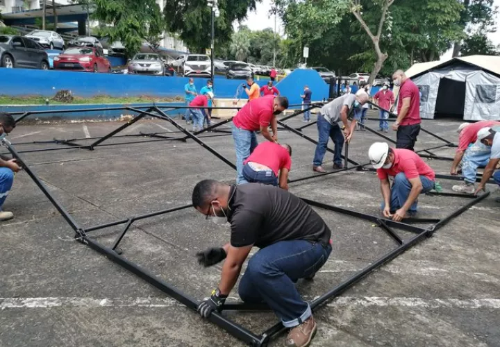 Hoy, sábado, continúan los trabajos para la instalación de hospital campaña en el complejo hospitalario "Dr. Arnulfo Arias Madrid", ubicado en la vía Transístmica.