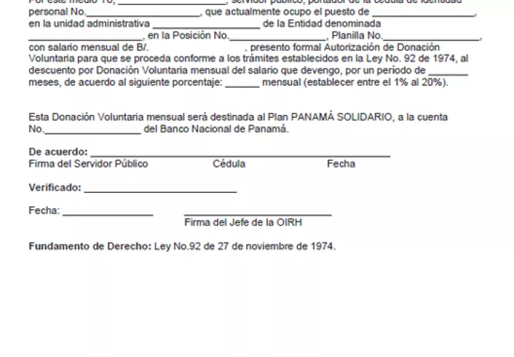 La Contraloría General de la República puso a circular entre las oficinas institucionales de recursos humanos el instructivo para que los servidores públicos, con salarios superiores a los mil balboas mensuales, autoricen la donación voluntaria de un porcentaje de su ingreso para incrementar los fondos del Plan Panamá Solidario orientado a aliviar el impacto del coronavirus entre la población panameña.