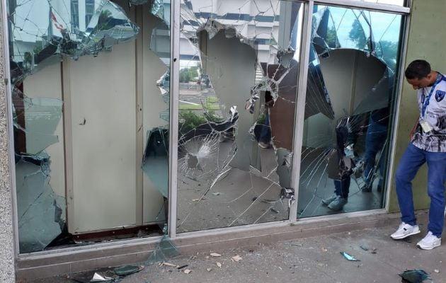 “Lamentamos que en el marco de la protesta del Suntracs unas personas en ese grupo sin mediar motivo ni provocación procedieran a vandalizar las instalaciones de la Contraloría rompiendo vidrios que dan a las oficinas de la planta baja donde hay mujeres y hombres, colaboradores de la Contraloría trabajando con dedicación”, indicó la entidad.