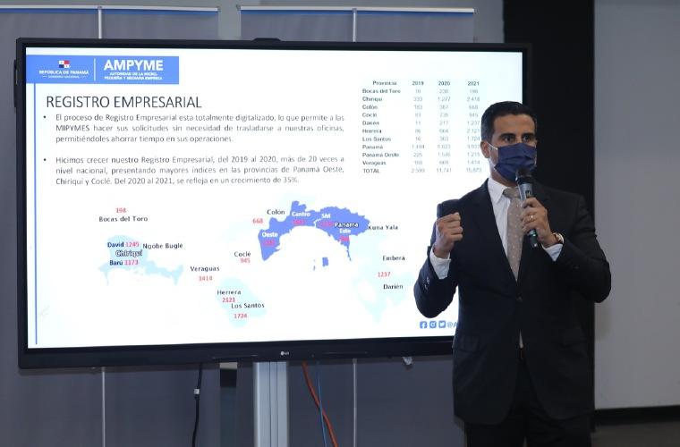 Oscar Ramos, director de Ampyme, presentó un informe sobre los logros y las acciones emprendidas en el último año y los efectos en la recuperación de las Mipymes.