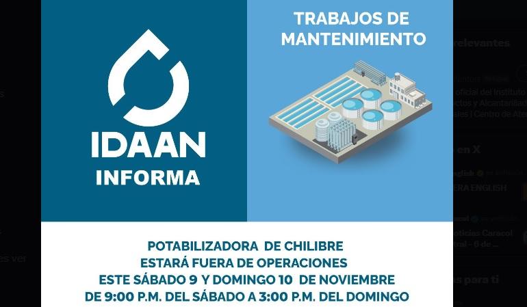 El servicio será suspendido desde las 9:00 p.m. del sábado hasta las 3:00 p.m. del domingo 10 de noviembre de 2024, como parte de un plan de inversiones para mejorar la Planta Potabilizadora Federico Guardia Conte.