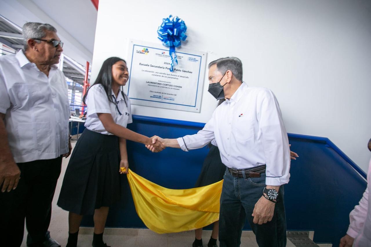 Cortizo entrega nuevas instalaciones de la escuela secundaria Pedro Pablo Sánchez, ubicada en La Chorrera.