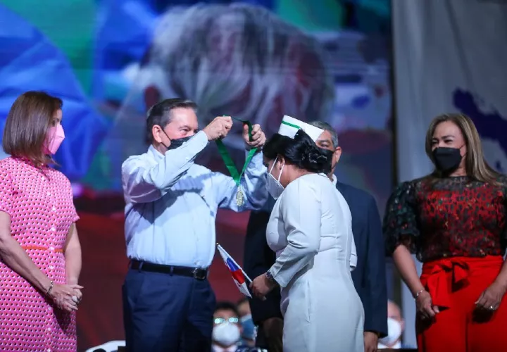 El presidente Laurentino Cortizo participó ayer en el acto de despedida y reconocimiento al equipo de enfermeras y técnicos procedentes del interior del país que, por más de seis meses, se mantuvieron en el Centro de Convenciones Vasco Núñez de Balboa cumpliendo con la vacunación contra el Covid-19.