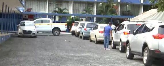 A lo largo de la vía Israel se observan la larga fila de autos con personas que desean ingresar al centro escolar, previa cita, y poder realizarse la prueba.
