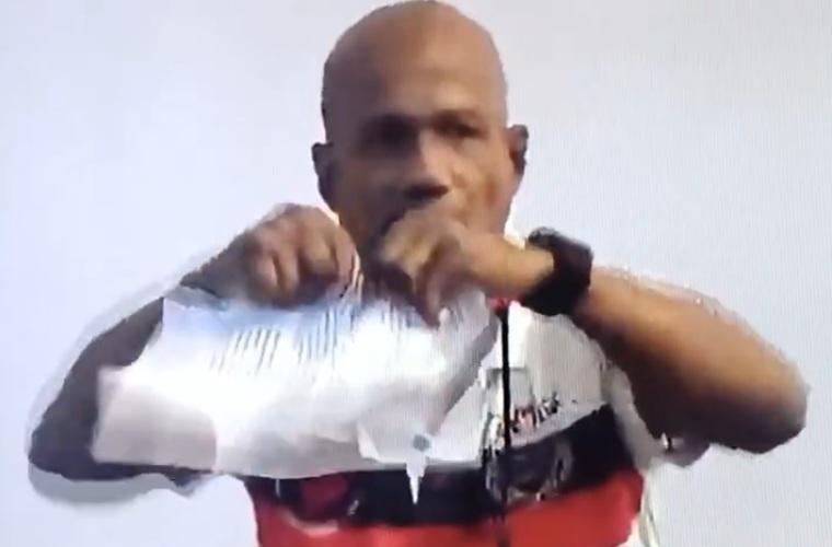 Luis Torres, en representación de los usuarios del transporte, rompió ayer frente a los diputados el proyecto de reformas a la ley de la Caja de Seguro Social (CSS), alegando que eso "no sirve" y exclamó que los miembros de la Asamblea Nacional son o se hacen.