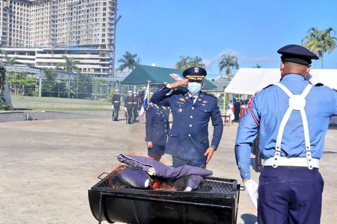 Con toda solemnidad se desarrolló hoy, viernes, el acto de cremación de unas 60 banderas en de distintas instituciones gubernamentales y estamentos de seguridad, como antesala de las Fiestas Patrias. Actividad a que se verificó en el Mirador del Pacífico sobre la Cinta Costera.