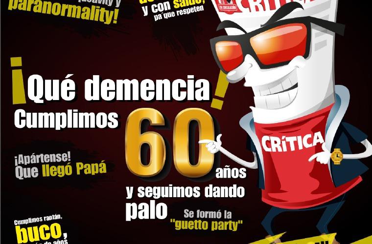 Creado el 10 de diciembre de 1958, por el Doctor Gilberto Arias Guardia, el diario “Crítica” cumplió ayer 60 años y se mantiene posesionado en la preferencia de los lectores de las diferentes capas sociales.
