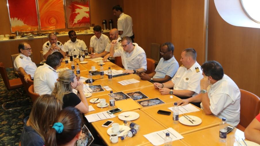 Los detalles para la llegada desde Costa Rica de 1,834 peregrinos en el crucero Maguellan a la Jornada Mundial de la Juventud en Panamá fue el tema de la reunión abordo de este barco.