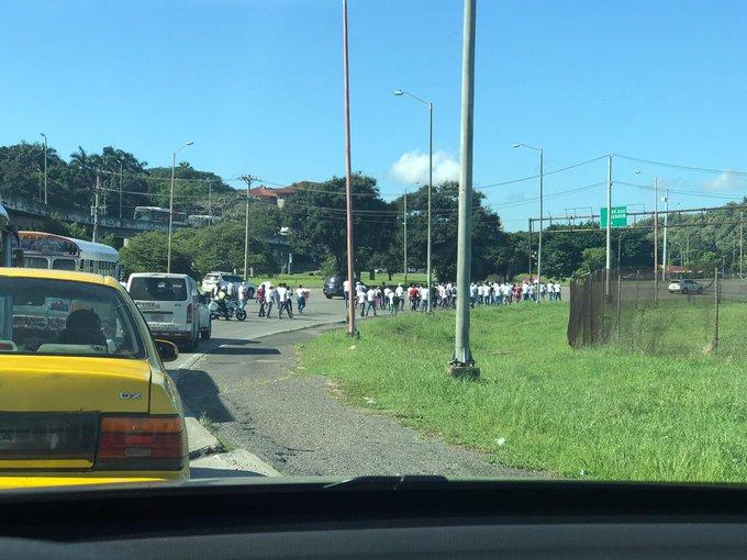 Residentes del corregimiento de Curundú marchan hoy, jueves, hacia las instalaciones del Ministerio de Obras Públicas, ubicadas en Albrook.