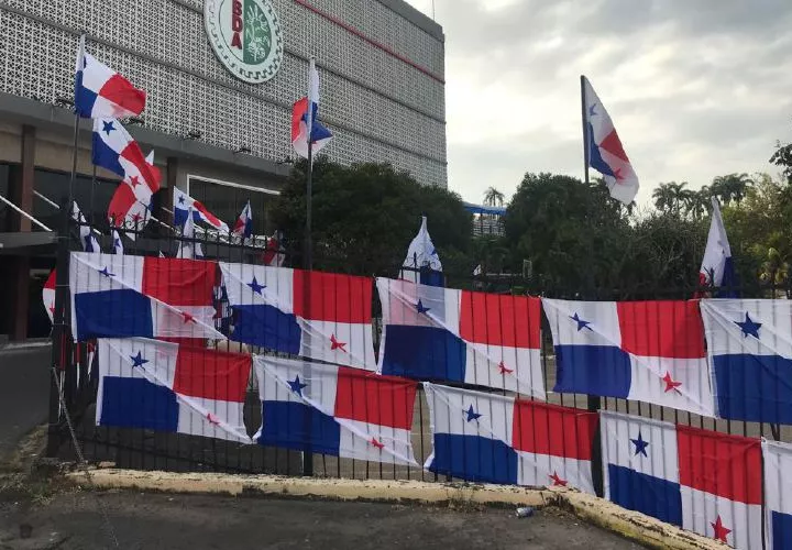 La cerca de la Asamblea fue decorada ayer por personal del Órgano Legislativo con banderas panameñas, como para frenar la protesta de mañana.