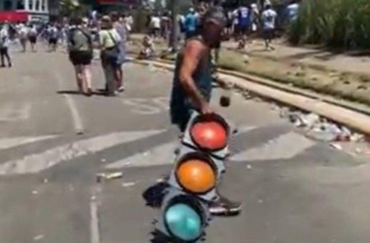Hubo locuras de todo tipo. Hay un video de un hombre llevándose un semáforo y despertó la ira en las redes.