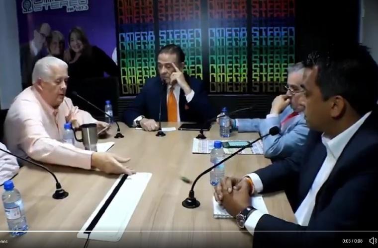 El momento más álgido del debate fue cuando el expresidente le "aventó" una memoria USB al abogado independiente desde un lado al otro de la mesa de entrevistas de Omega Stereo, en vez de entregárselo en la mano.