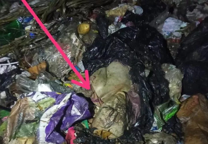 Degollado y dentro de bolsa entre la basura de Cerro Patacón