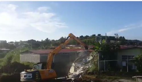 Panamá- Hoy, martes, iniciaron los trabajos de demolición de una de las dos casas de la urbanización de Plaza Valencia, ubicada en el corregimiento Ernesto Córdoba, que fueron declaradas por el Sistema Nacional de Protección Civil (Sinaproc) como inhabitables debido al riesgo que colapse por la inestabilidad del terreno.