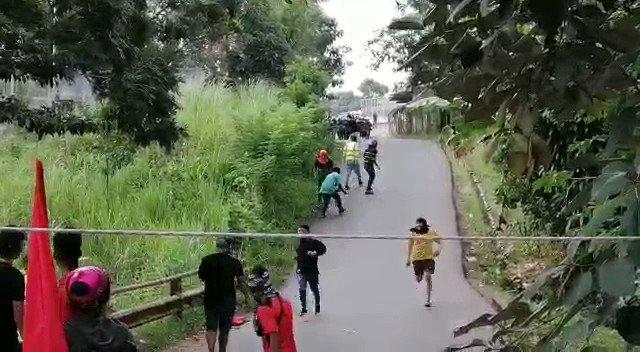 Unidades de la Policía de Control de Multitudes tuvieron que intervenir ante el cierre de la vía por un grupo de invasores que se resistían de salir de las tierras.