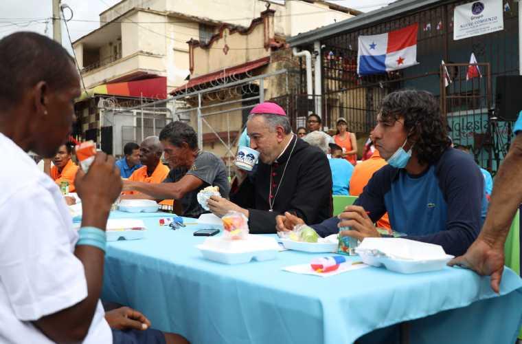 Asemejándose a la última Cena de Jesús con sus apóstoles, la calle 32 Este del popular barrio de Calidonia se convirtió en lugar sagrado donde el arzobispo de Panamá, José Domingo Ulloa Mendieta, celebró ayer la Eucaristía por la VII Jornada Mundial de los Pobres, con el lema “No apartes tu rostro del pobre”.