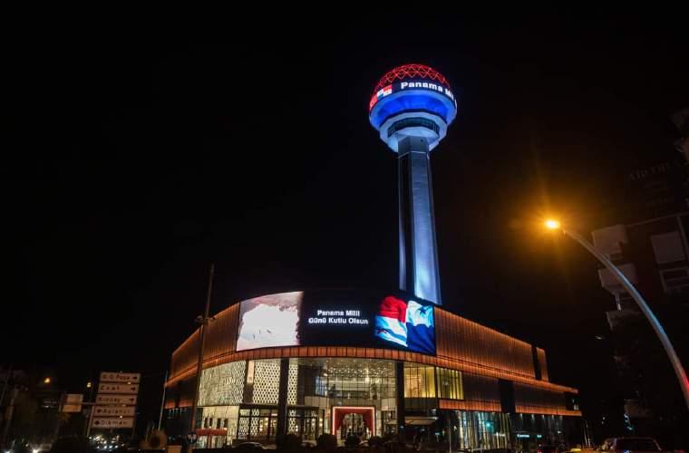 La Torre de Atakule, en Ankara, Turquía, fue iluminada ayer con los colores de la bandera de Panamá exhibió un mensaje de felicitaciones al país.