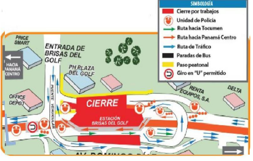 Para la realización de los trabajos será necesario el cierre de los carriles de avenida Domingo Díaz que dirigen hacia Panamá Centro, en el área de la estación Brisas del Golf, al igual que los carriles internos de entrada a la barriada Brisas del Golf.