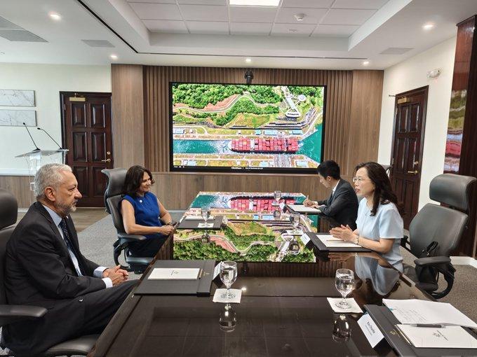 La embajadora de la República Popular China en Panamá, Xu Xueyuan, sostuvo una reunión con el administrador de la Autoridad del Canal de Panamá (ACP), Ricaurte Vásquez, con el objetivo de fortalecer la cooperación bilateral en temas marítimos y de transporte naviero. En el encuentro también participó la subadministradora del Canal, Ilya Espino de Marotta.