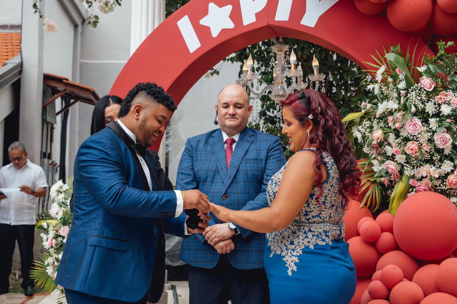 El evento, denominado "Matrimonios que brillan para siempre", reunió a los enamorados en un romántico escenario en la Casa de la Municipalidad, donde fueron acompañados por familiares, amigos y autoridades. La ceremonia fue oficiada por el magistrado Alfredo Juncá, y contó con la presencia del alcalde Mayer Mizrachi y la gobernadora Mayín Correa como testigos de honor.