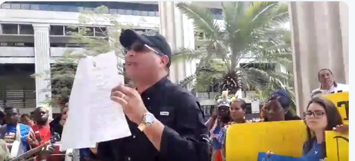 Dimitri Flores y su grupo de apoyo realizaron hoy una protesta en el Tribunal Electoral (TE), por supuestas irregularidades relacionadas con el proceso de recolección de firmas de aspirantes independientes, a la Presidencia de la República.