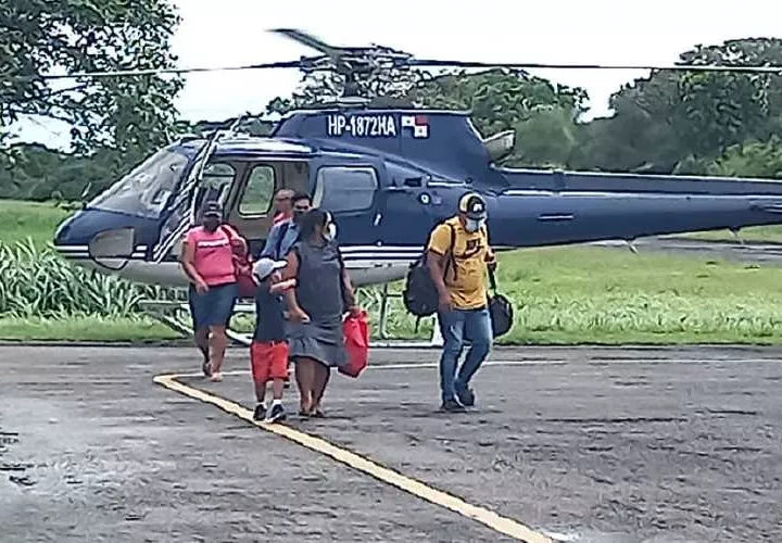 El sábado fueron transportados en helicópteros un grupo de educadores y dos menores de edad de las comunidades de La Trinchera, Mayo, Sulidú, Cerro Balsa y Urracá.