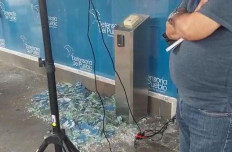 Un grupo de docentes e indígenas de Panamá Este llegaron ayer hasta la sede principal de la Defensoría del Pueblo y tras un incidente reventaron parte de la vidriera de estas instalaciones.