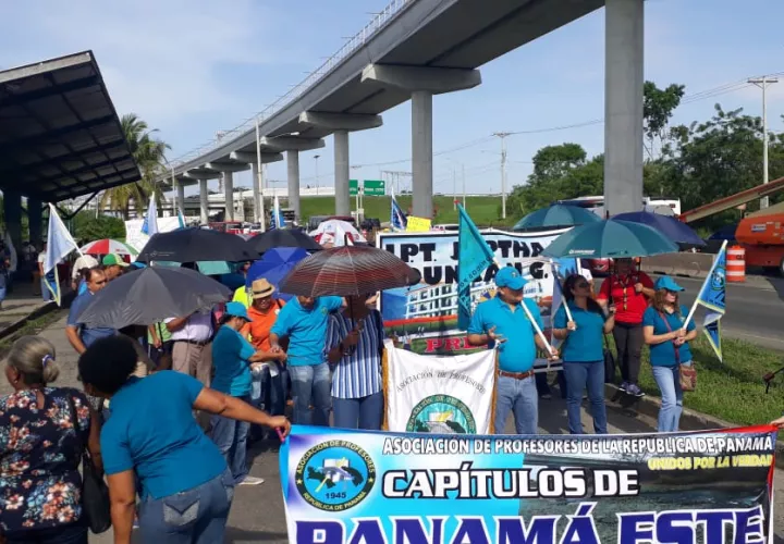 Panamá- Educadores, estudiantes y padres de familia al ritmo de un alegre tamborito marchan por la vía Panamericana-desde El Machetazo hasta la Instituto Profesional hasta Técnico Jeptha B. Duncan- para pedir mejores condiciones en unos 16 centros educativos que se concentran en el área del Este.