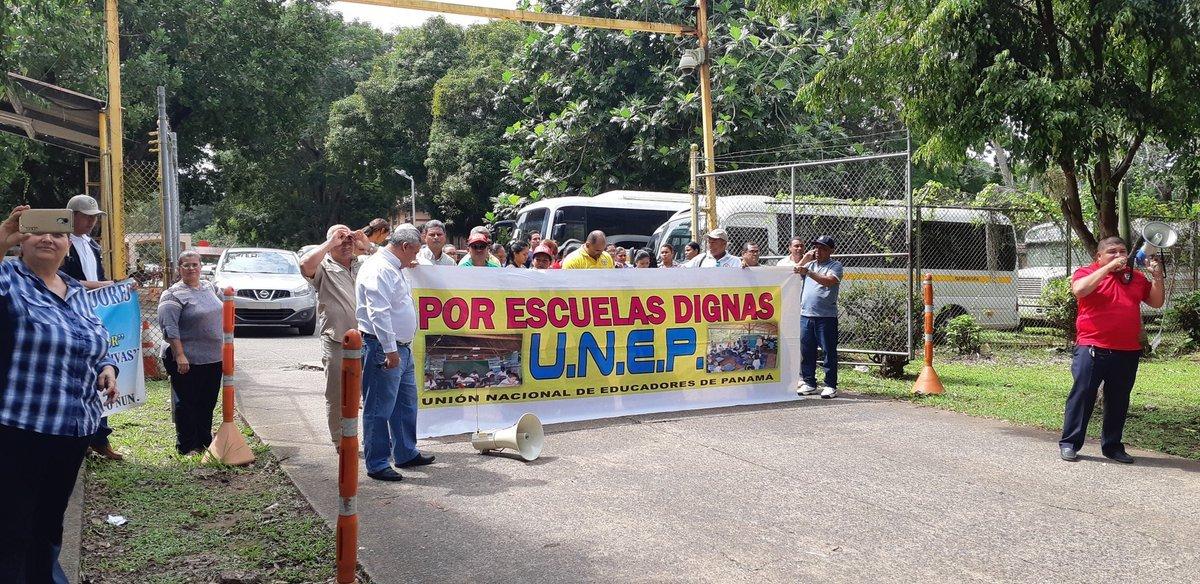 Panamá- Docentes protestan hoy, viernes, en la entrada de la sede central del Ministerio de Educación, ubicada en Cárdenas, para exigir pagos atrasados a un grupo de compañeros.