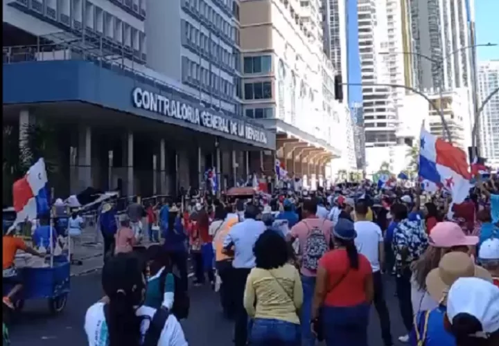 Panamá- Docentes agremiados en la Asociación de Profesores de Panamá (Asoprof) y otras organizaciones sindicales educativas de los distritos de Panamá y San Miguelito, trasladaron este jueves su manifestación pacífica contra el contrato minero a la parte frontal de la Contraloría General de la República, en Avenida Balboa.