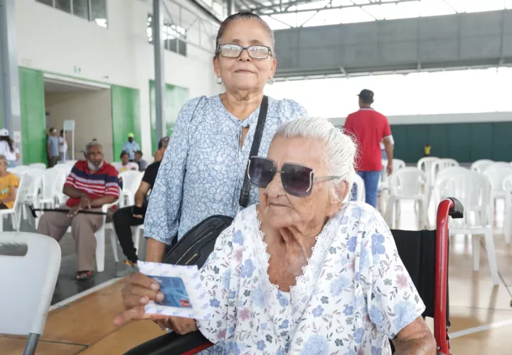¡No se quedó atrás! Fidelina Carrera, de 100 años, acudió en silla de ruedas al complejo deportivo Los Andes No.2 en San Miguelito para recibir su nueva Tarjeta Clave Social, como parte de una jornada organizada por el MIDES para renovar tarjetas vencidas.