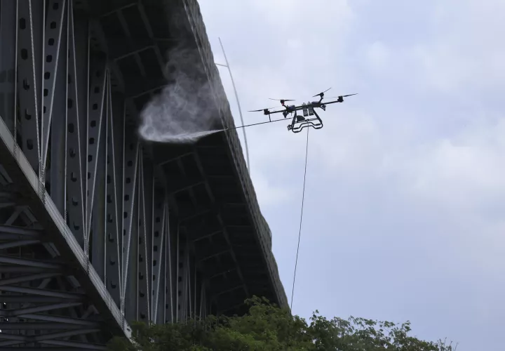 Los trabajos se realizan con un dron que lanza agua a presión directamente sobre la estructura.