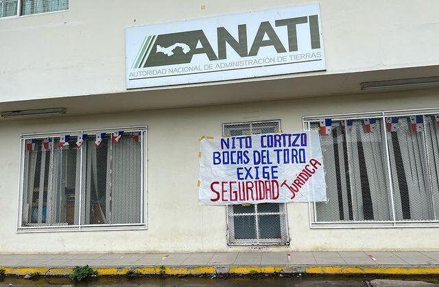 Desde hace días, los miembros de la familia Torres ha cerrado con cadena y candados varias oficinas gubernamentales impidiendo el ingreso de los trabajadores. En la entrada de las oficinas de la Autoridad Nacional de Tierras (ANATI) colocaron una pancarta que dice: "Nito Cortizo... Bocas del Toro exige Seguridad Jurídica".