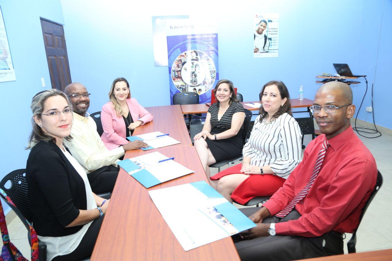 Rubén Pedmore de Balboa Academy Ilka Barahona y Pedro Fábrega de Knowledge Group, Elsie Rabat Col Brader, Jorge Wingnall del Col St Mary, Natalia Diaz de Microsoft y Mónica Fábrega de Knowledge Grou, aparecen en la foto de despedida.