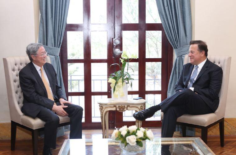 El mandatario Juan Carlos Varela recibió ayer al gobernador del Banco Popular de China, Zhou Xiaochuan, para trabajar de la mano a fin de fortalecer estrategias de inversión, mutua colaboración y políticas de Estado en el ámbito financiero.