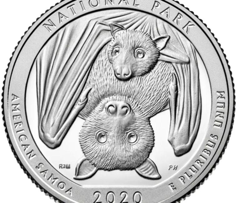 Lo cierto es que la moneda forma parte de la serie "America the Beautiful Quarter", que presenta un diseño dedicado al Parque Nacional de Samoa Americana. En la pieza de 25 centavos se representan las imágenes de una murciélago unido a su cría.