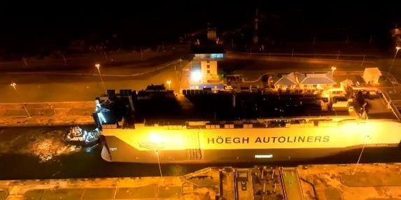 El Canal de Panamá reafirmó su posición como eje clave en el comercio marítimo internacional con el tránsito hoy del buque Hoegh Aurora, el portavehículos más grande del mundo, de la línea naviera Höegh Autoliners.