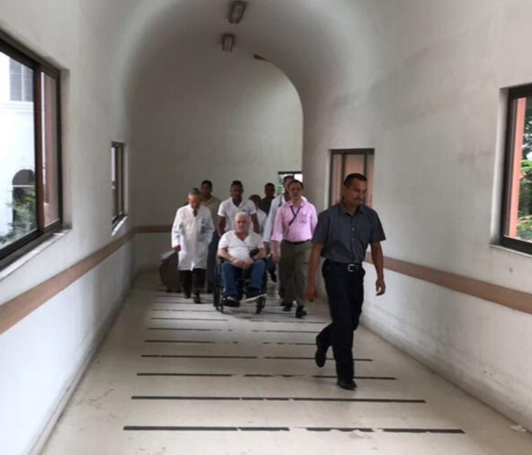 Martinelli fue llevado hasta los estacionamientos del hospital en silla de ruedas y escoltados por algunos médicos que lo atendieron, entre esos el director del hospital, tras sufrir una arritmia e hipertensión, que le hacían propenso a un accidente cerebrovascular.