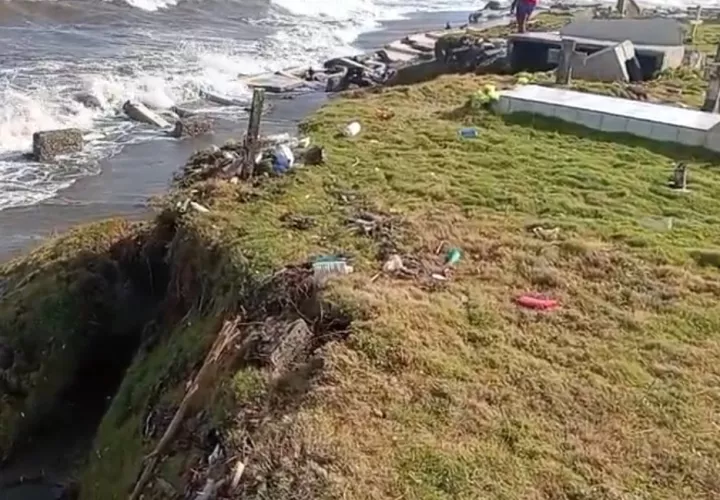 A finales de esta semana, los fuertes oleajes ingresaron al cementerio de la comunidad de Gobea, ubicado en el distrito de Donoso, en la Costa Abajo de Colón, dañando las sepulturas que están cerca a orillas del mar. La marea no respetó ni a los que descansan en paz y dejó escenas que tienen a la comunidad con el corazón apretado.