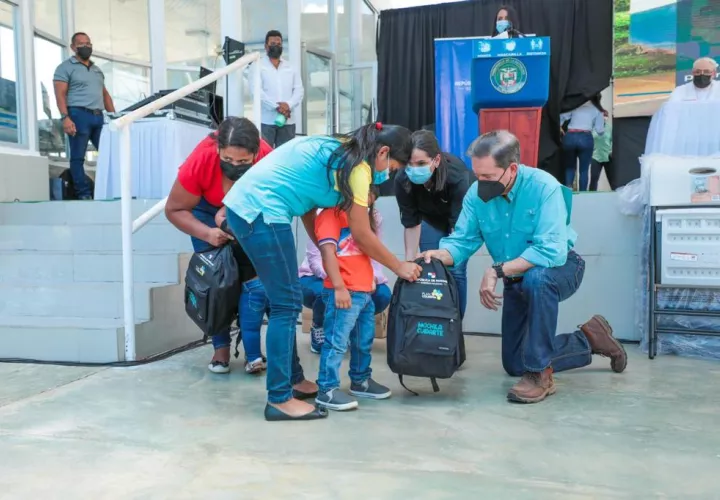 El mandatario en una gira por la provincia de Chiriquí distribuyó de manera simbólica tres tabletas a estudiantes graduandos de un total de 5,235 tabletas que se entregarán a estudiantes de duodécimo grado con la finalidad de apoyarlos en el proceso de educación virtual.