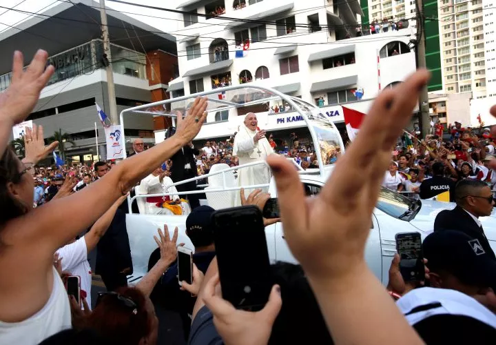 Sin duda que la llegada del papa fue una muestra de la fuerza de la Iglesia en Panamá y la región. Desde que salió el convoy de los terrenos del aeropuerto, decenas de miles de personas se pararon en la ruta para saludar a Francisco, que haciendo honor a su fama de humilde y campechano, pasó la primera parte de su ruta con la ventana abierta, ondeando su mano amigablemente sentado en un Toyota Prius azul oscuro.