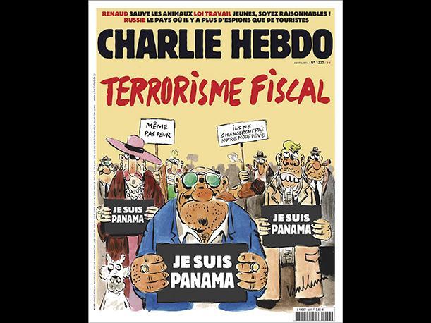La revista "Charlie Hebdo" dedicó su portada de esta semana a las revelaciones sobre la evasión de impuestos internacional bajo el título "Terrorismo fiscal", e ironiza con un lema para ricos, "Je suis Panamá", que parafrasea al que sirvió de movilización tras el atentado a la propia revista parisina.