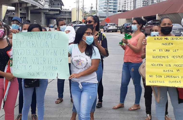 Un grupo de mujeres piquetearon ayer las oficinas de la Caja del Seguro Social, en el edificio Bolívar, para reclamar el pago de su subsidio de maternidad.